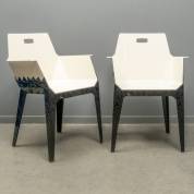 Paar hoekig vormgegeven zwart-witte kunststof stoelen