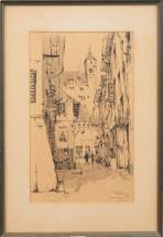 Jan Korthals (1916-1972), 'Marktgasse Rappersville', Oost-Indische inkt op papier, r.o. gesigneerd en gedateerd '48, 28 × 17