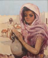 Willem Jilts Pol (1905-1988), Oosterse vrouw met waterkruik, olieverf op doek, l.o. gesigneerd, 60 × 50 cm