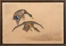 Léon Danchin (1887-1938), vliegende eenden, kleurenlitho 95/500, r.o. gesigneerd, 37 × 58 cm