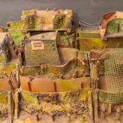 Groot vijftiendelig beschilderd houten en papier-maché bunker- loopgravencomplex, uitvoering Hausser/Elastolin, jaren '30/'40