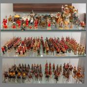 Verzameling tinnen soldaatjes, deels te paard, vermoedelijk uitvoering Schildkröt, tweede helft 20e eeuw
