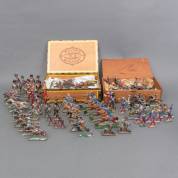 24 dozen met diverse tinnen en kunsthars soldaatjes, voornamelijk uitvoering W. Britain, eind 20e eeuw