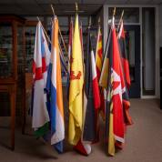 Dertien diverse vlaggen aan stokken, modern