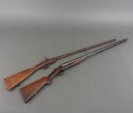 Gedeactiveerd dubbelloops jachtgeweer, uitvoering J & W Tolley, Engeland, 20e eeuw, daarbij: een enkelloops percussie jachtgeweer, 19e eeuw -defecten-
