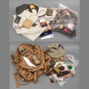 Diverse militaria: kleding, twee tassen, diverse insignes, knopen, epauletten, etc.