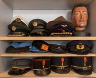 Verzameling van zeventien diverse petten, baretten en kepie's, tweede helft 20e eeuw, daarbij: een beschilderd paspophoofd