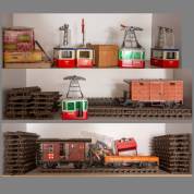 Diverse L.G.B. treindelen, waaronder drie wagons, spoordelen, en figuren, daarbij: diverse Rigi kabelbaandelen