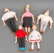Vijf poppen van de personages uit de Suske en Wiske reeks, tante Sidonia 38 cm hoog