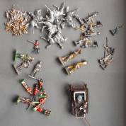 Verzameling platte tinnen figuren van diverse formaten en periodes