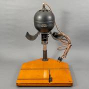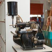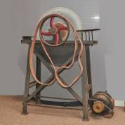 Grote mechanische slijptol, uitvoering Weco, met in hoogte verstelbaar tafeltje, afmetingen inclusief tafel 118 × 48 × 48 cm, herkomst: Optiek Museum Surhuisterveen