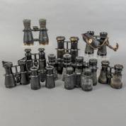 Tien metalen verrekijkers, diverse merken en modellen, waaronder: Aro Kater, Lemaire Fabt Paris, en Dollond London, 20e eeuw -gebruikssporen en beschadigingen-, herkomst: Optiek Museum Surhuisterveen
