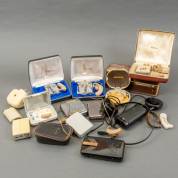 Gehoorapparaten en andere auditieve ondersteuners, diverse merken en modellen, waaronder Philips, 20e eeuw -gebruikssporen-, herkomst: Optiek Museum Surhuisterveen