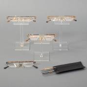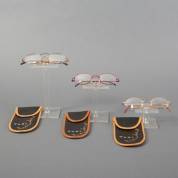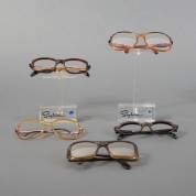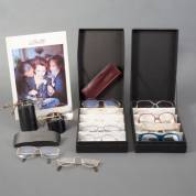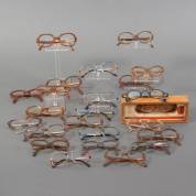 Verzameling brillen en brilmonturen, alle met originele papieren hoesjes, gemerkt en uitvoering Rodenstock, Duitsland, waaronder model Nicole en Donna, inclusief reclamebordje en brillenhouders, herkomst: Optiek Museum Surhuisterveen