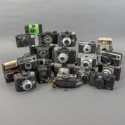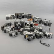 Verzameling analoge fotocamera's, diverse merken en modellen, waaronder: Miranda, Fujica, Afga, Ilford, Yashica, Olympus, en Canon, 20e eeuw -gebruikssporen, enkele defecten-, herkomst: Optiek Museum Surhuisterveen