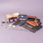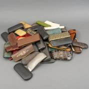 Verzameling brillenkokers- en etuis, veelal 19e eeuw, waaronder exemplaren van karton of metaal, herkomst: Optiek Museum Surhuisterveen