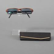 Zonnebril met bruin-zwart kunststof montuur, gemerkt en uitvoering Versace, Italië, jaren '80/'90, inclusief twee Versace brillendoekjes, daarbij: zwarte brillendoos met goudkleurige stippen, niet gemerkt, herkomst: Optiek Museum Surhuisterveen