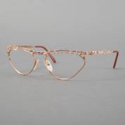 Verguld brilmontuur, het frame met vlekkendecor in pasteltinten, model 135 ISIS, gemerkt en uitvoering Alain Delon, Frankrijk, in originele kartonnen verpakkingsdoos, herkomst: Optiek Museum Surhuisterveen