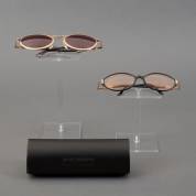 Bril met ovale glazen in verguld montuur met zilverkleurige ornamentjes, en vergelijkbaar model zonnebril in zilverkleurig montuur, beide model Taxi-1860, uit de serie: Taxi Modi di Vedera, uitvoering Casanova, Italië, jaren '90, inclusief één brillenetui, herkomst: Optiek Museum Surhuisterveen