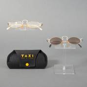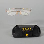 Bril met rood metalen montuur, model Taxi-2120, bril met verguld montuur, model Taxi-2118, en bril met verguld montuur en veelkleurig frame, model Taxi-2103, alle drie uit de serie: Taxi Modi di Vedera, uitvoering Casanova, Italië, inclusief drie brillenetuis, herkomst: Optiek Museum Surhuisterveen