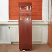 Rechthoekige vitrine op wieltjes met houten kap en basement, 146 × 40 × 40 cm, herkomst: Optiek Museum Surhuisterveen