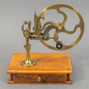 Arrondeermachine, het onderstel met lade, inclusief opzetstukken, circa 1900, 26 × 21 × 15 cm, herkomst: Optiek Museum Surhuisterveen