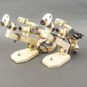 Twee groefmachines: uitvoeringen Essel en Essilor, Frankrijk, eerste helft 20e eeuw, 10 × 25 × 8 cm, herkomst: Optiek Museum Surhuisterveen