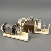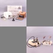 Vier elektrische soldeermachines: één uitvoering Lamaf, één uitvoering Nitsche & Günther, één uitvoering Weckmann, en één ongemerkt, afmetingen grootste 23 × 30 × 32 cm, daarbij: soldeerklem, herkomst: Optiek Museum Surhuisterveen