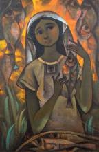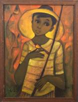 Roger San Miguel (1940), vissersjongen met vogeltje, olieverf op doek, l.o. gesigneerd, 61 × 45 cm