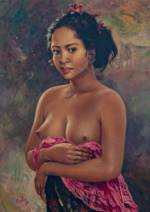 Hasim (1921-1982), Balinees halfnaakt, de vrouw van de kunstenaar, olieverf op doek, l.o. gesigneerd, 73 × 53 cm