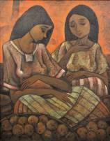 Roger San Miguel (1940), twee fruitverkoopsters, olieverf op doek, r.o. gesigneerd, 90 × 60 cm