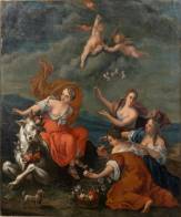 Schilderij: Europa en de stier, olieverf op doek, niet gesigneerd, op de lijst toegeschreven aan de (fictieve?) schilder 'Scagioletti', 18e eeuw -inschilderingen, gedoubleerd-, 96 × 81 cm