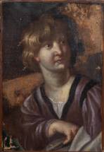 Schilderij: man in paarse kleding, olieverf op doek, niet gesigneerd, 17e/18e eeuw -matige staat-, 33 × 23 cm