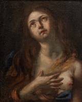 Schilderij: Maria Magdalena, olieverf op doek, niet gesigneerd, 18e eeuw -verpoetst/verpoederd-, 27 × 22 cm
