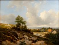 Andreas Schelfhout (1787-1870), duinlandschap met figuren, olieverf op paneel, l.o. gesigneerd en gedateerd '57, 30 × 38 cm