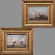 Hollandse School, twee schilderijtjes: schepen bij de kust, olieverf op paneel, niet gesigneerd, 19e eeuw, 12,5 × 17,5 cm