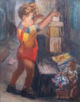 Antoine 'Toon' Pluymers (1910-1967), 'Spelende Vincent', afbeeldend de zoon van de kunstenaar: beeldhouwer Vincent Pluymers (1947-2010), olieverf op triplex, r.b. gesigneerd, begin jaren '50, 90 × 70 cm