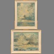 Jan Wingen (1874-1956), twee werken: wolkenhemel breekt open boven zee, olieverf op doek, r.o. gemonogrammeerd, en wolkenlucht boven zee, olieverf op doek, r.o. gemonogrammeerd, respectievelijk 23 × 17 cm en 17 × 23 cm