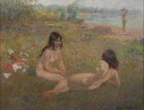 Harry Frans Hubert Maas (1906-1982), drie naakten bij een ven, olieverf op doek, r.o. gesigneerd en gedateerd 1976, 70 × 89 cm