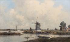 Johannes Marinus Drulman (1912-1977), polderlandschap met molens, olieverf op doek, r.o. gesigneerd met pseudoniem M. De Jongere, 59 × 99 cm