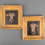 Hollandse School: paar portretten van runderen, olieverf op paneel, beide gesigneerd H.J. Nieuwenhuis en gedateerd 1869, 17 × 14,5 cm