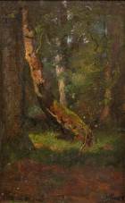 Mogelijk Narcisse Díaz de la Peña (1807-1876), boomstronk met vlinders in het bos, marouflé, r.o. gesigneerd, verso annotatie op paneel, 34 × 21 cm