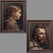 Oost-Europese School: paar pendantportretten, marouflé, niet gesigneerd, eerste helft 20e eeuw, 46 × 34,5 cm