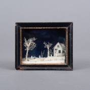 Handbeschilderde glazen kerstbal in de vorm van buitenhuis Goudestein, gemeentehuis van Maarssen, genummerd 32/350, 8 × 7 × 7 cm, opbrengst ten bate van Stichting Leergeld, in samenwerking met de Ronde Tafel Maarssen, zie ook www.rt161.nl