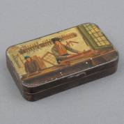 Amelander hoekkast, deels gemarmerd, de deur met twee scènes van schepen en de walvisvangst, 19e eeuw -defecten en gebruikssporen, stukje profiel ontbreekt, slot los bijgevoegd-, 95 × 50 × 50 cm
