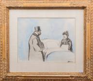 Jean Louis Forain (1852-1931), 'L'absence du patient', aquarel en krijt op papier, r.o. gesigneerd, 27 × 34 cm