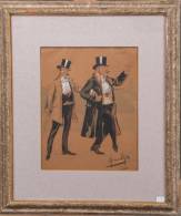 Menno Simon Jacobus van Meeteren Brouwer (1882-1974), twee heren, pastelkrijt en aquarel op papier, r.o. gesigneerd en gedateerd 1901 -papier gebruind-, 27 × 21 cm