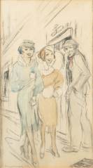 Piet van der Hem (1885-1961), winkelende dames, aquarel en krijt op papier, l.o. gesigneerd -enkele vlekjes, vuil achter glasplaat-, 51 × 38,5 cm