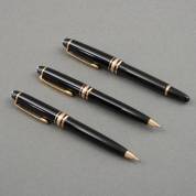Driedelige schrijfset bestaande uit vulpen, ballpoint, en mechanisch potlood, model Meisterstuck W.A. Mozart, uitvoering Montblanc, de vulpen met 14kt gouden punt, 1997 -gebruikssporen-, inclusief etui en originele doos