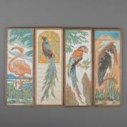 Vier aardewerk cloisonné wandtegels: papegaai, goudfazant, maraboe, en flamingo, alle ontwerp Lambert Bodart, uitvoering De Porceleyne Fles, Delft, circa 1925 -fazant met minieme hoekschilfer-, 32,7 × 12,2 cm per stuk